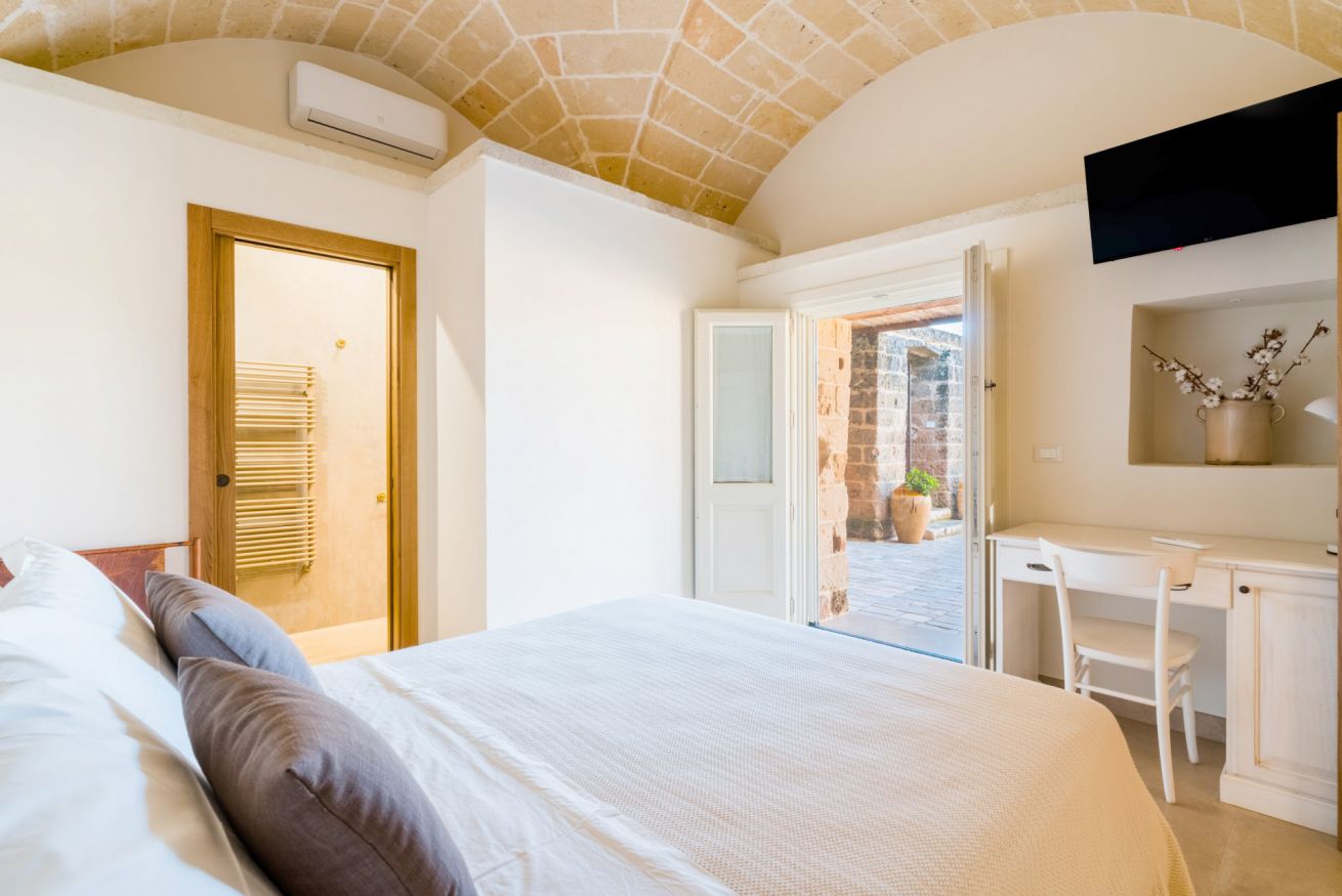Ristrutturata nel rispetto dell’architettura rurale locale, la masseria conserva il fascino originale della pietra salentina, arricchendolo con servizi moderni e un’ospitalità attenta, ideale per coppie, famiglie e piccoli gruppi.