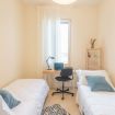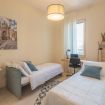 🛏️ Tre camere da letto: una matrimoniale con bagno privato, armadio, comodini e aria condizionata (pouff letto singolo disponibile per ospite extra), e due camere singole con letti singoli (ciascuna con letto estraibile), scrivania, bagno privato e aria condizionata