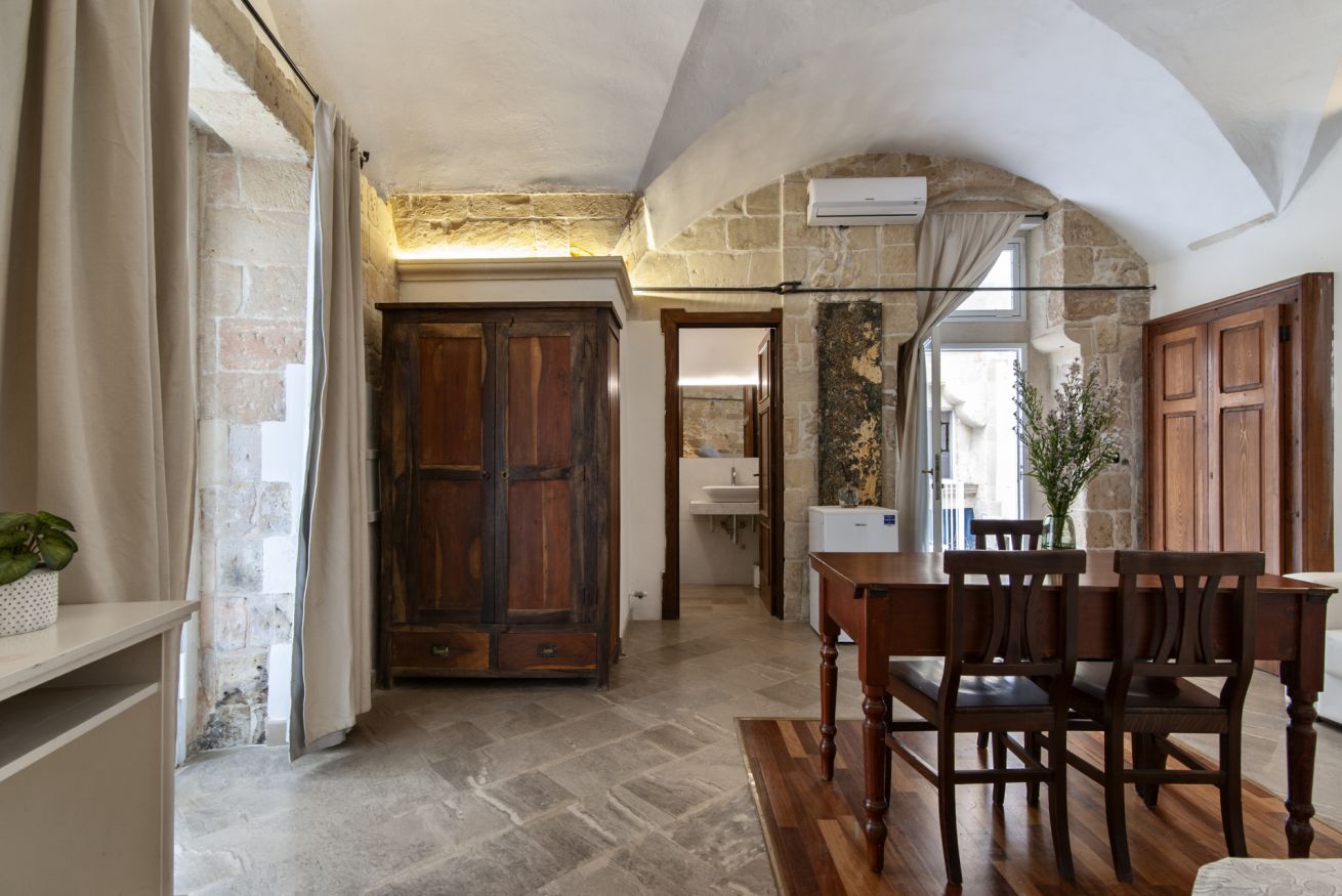 Situata all’interno del prestigioso complesso Chiesa Greca Suites, LUPIAE è un raffinato appartamento ricavato dalla ristrutturazione di un palazzo cinquecentesco. Le mura in pietra leccese a vista, i soffitti alti e le volte a stella regalano un’atmosfera unica, che unisce fascino storico e comfort moderno.
