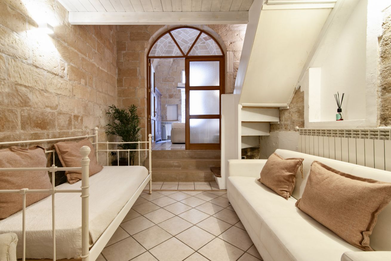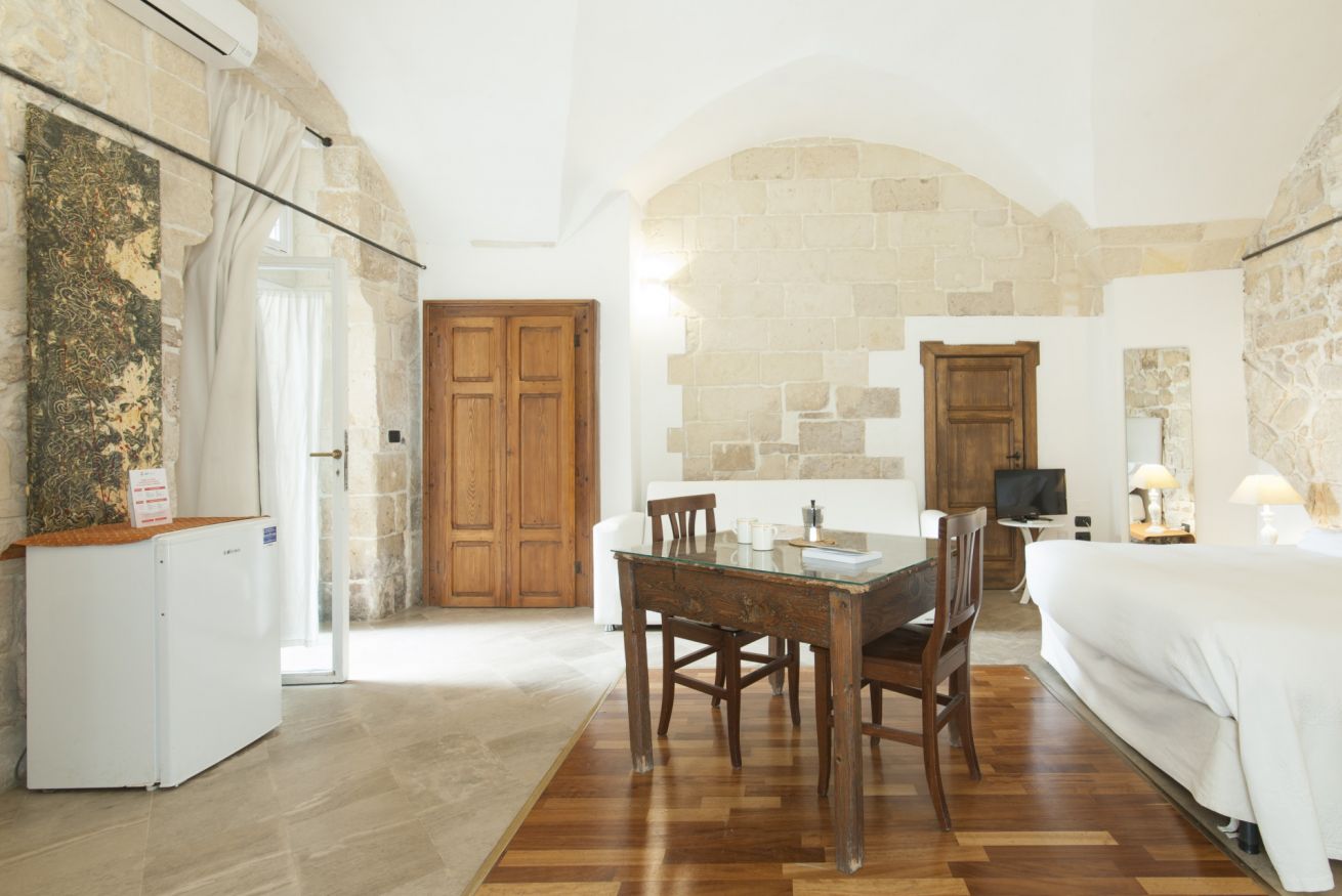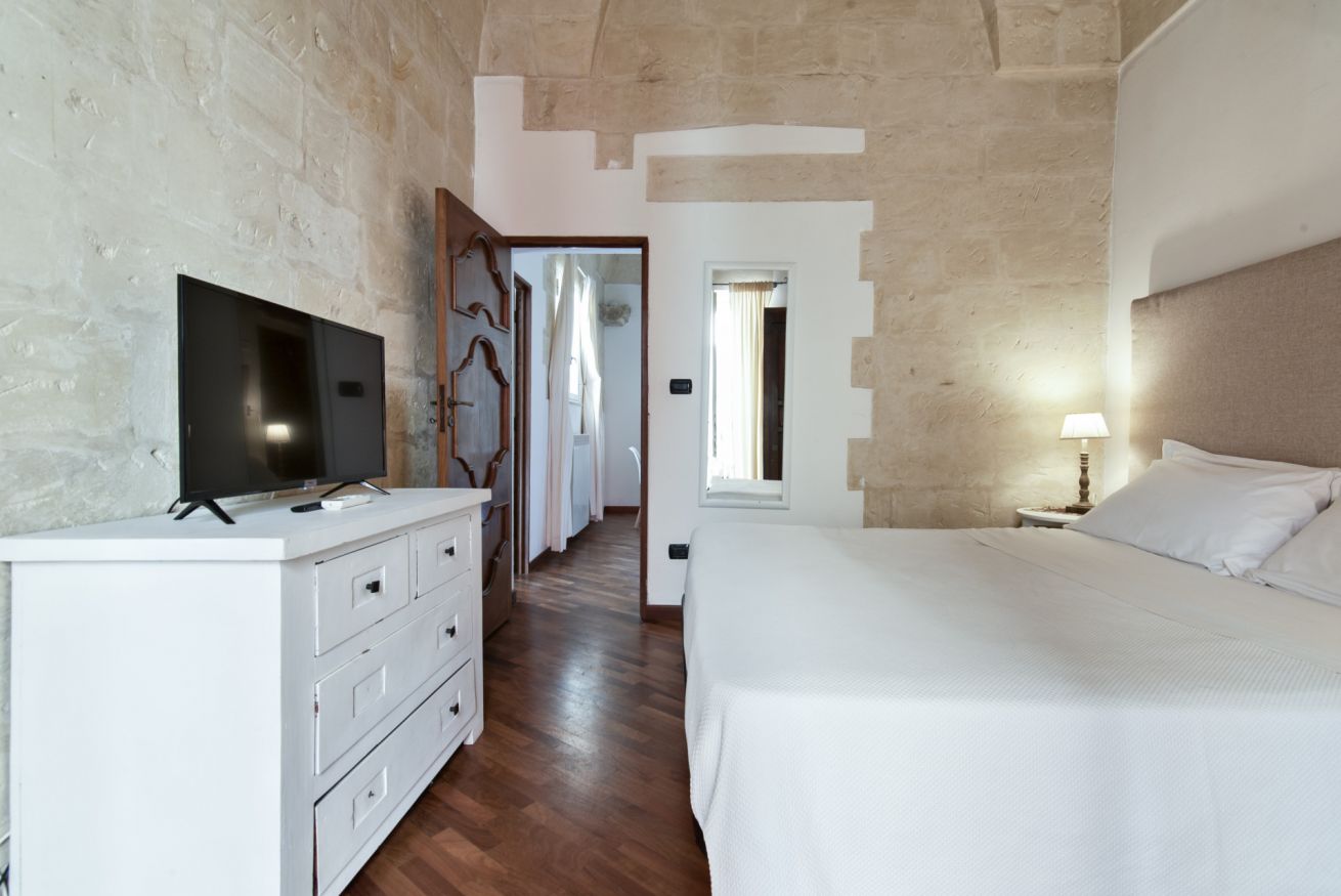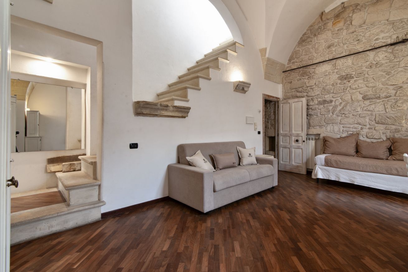 Ricavata dalla ristrutturazione di un palazzo cinquecentesco, conserva le mura in pietra leccese a vista, i soffitti alti e le tipiche volte a stella. Un ambiente che fonde stile tradizionale e arredi contemporanei, per un soggiorno autentico ed elegante.