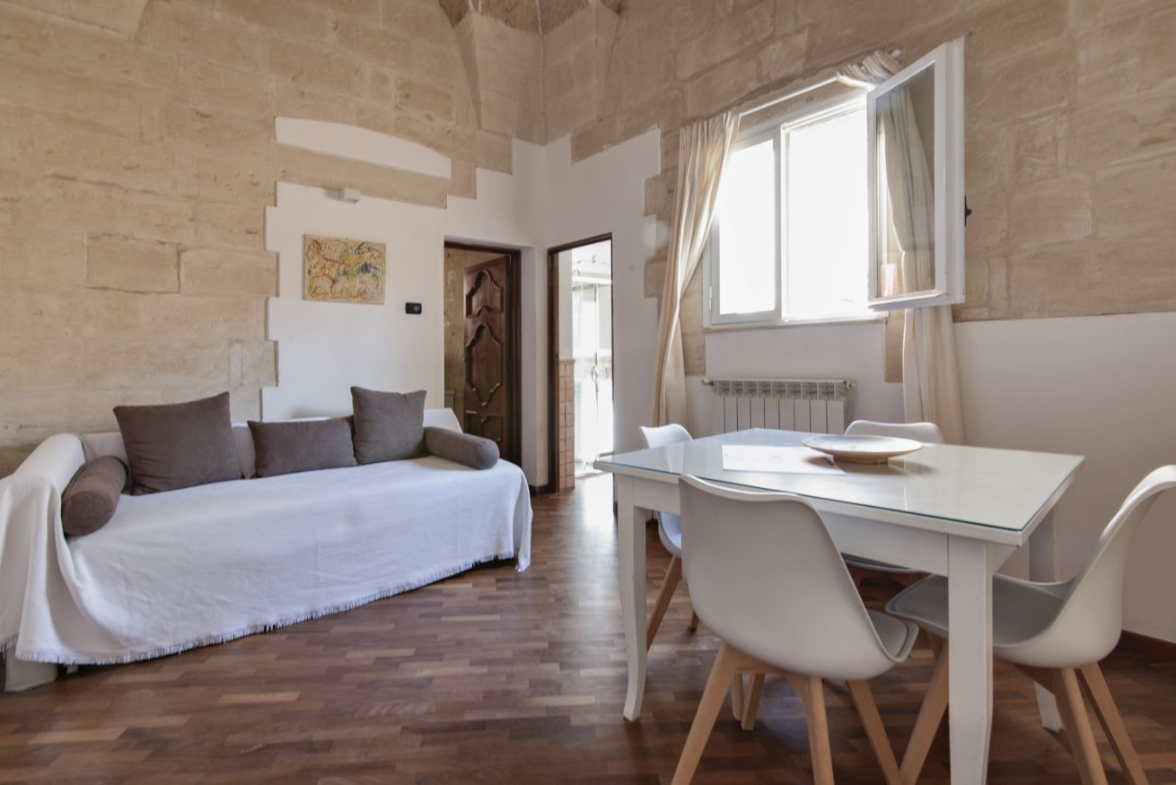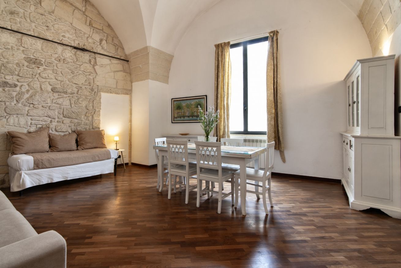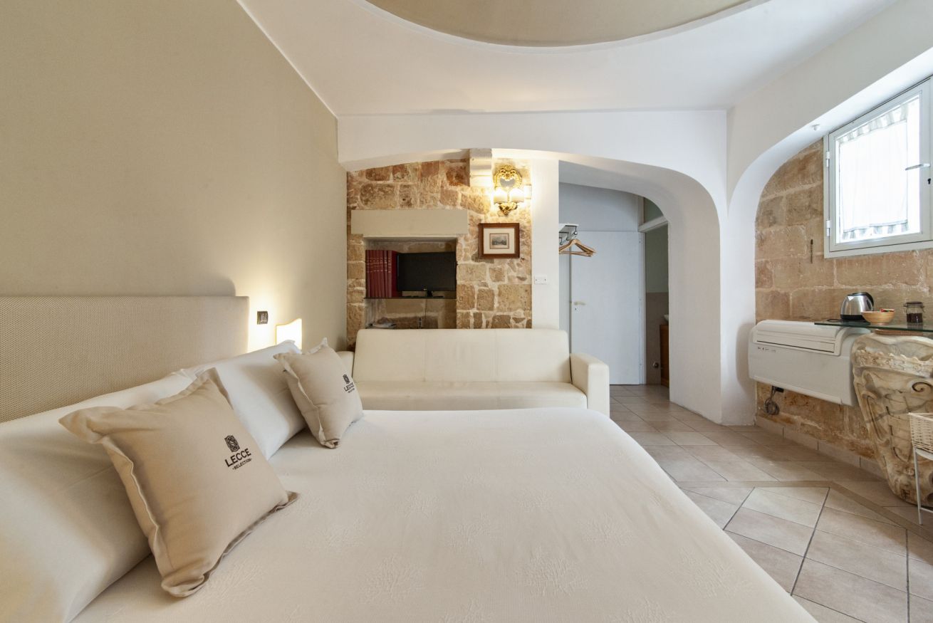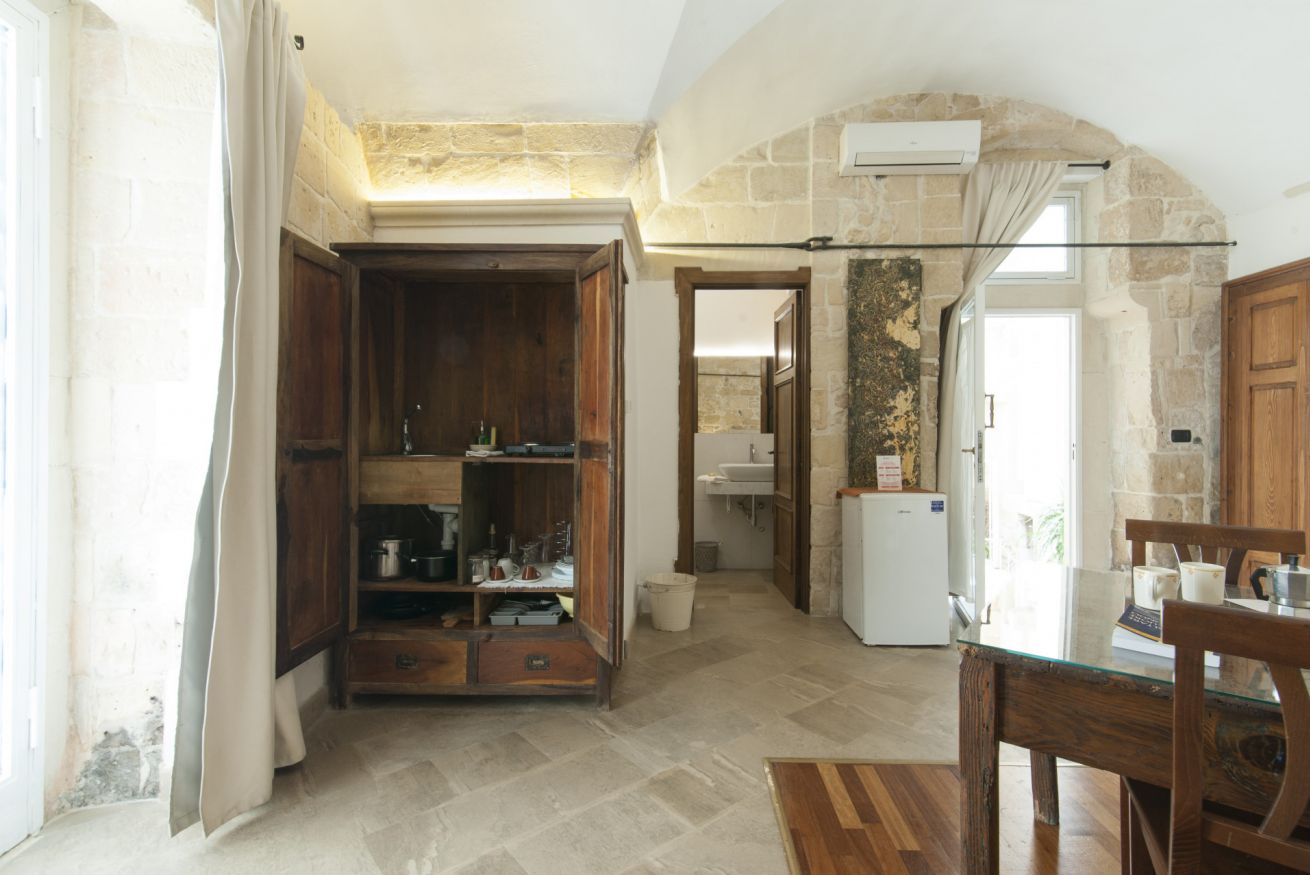 Ricavata dalla ristrutturazione di un palazzo cinquecentesco, conserva le mura in pietra leccese a vista, i soffitti alti e le tipiche volte a stella. Un ambiente che fonde stile tradizionale e arredi contemporanei, per un soggiorno autentico ed elegante.