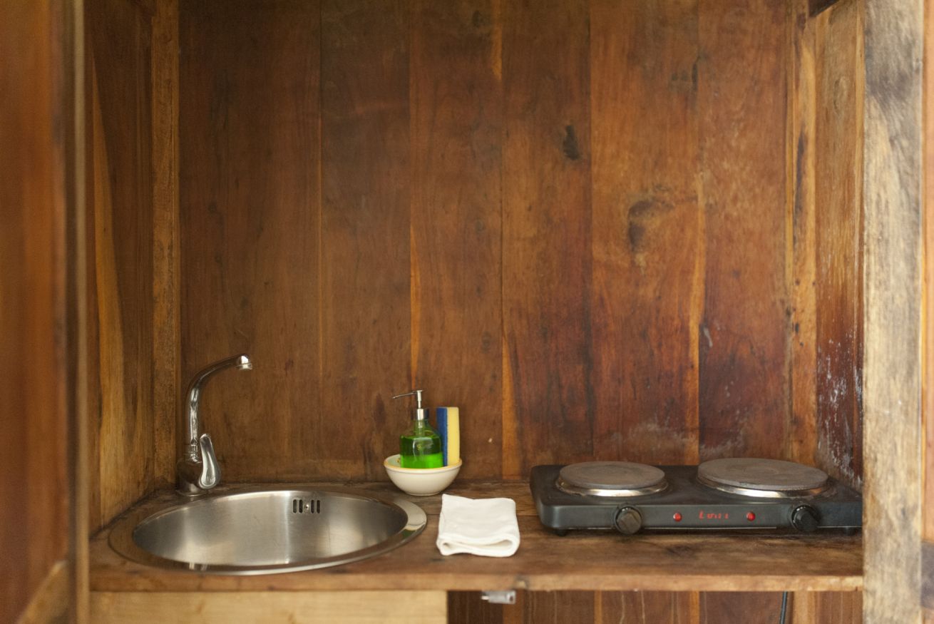 - Angolo cottura attrezzato con piano cottura, frigorifero e stoviglie essenziali
