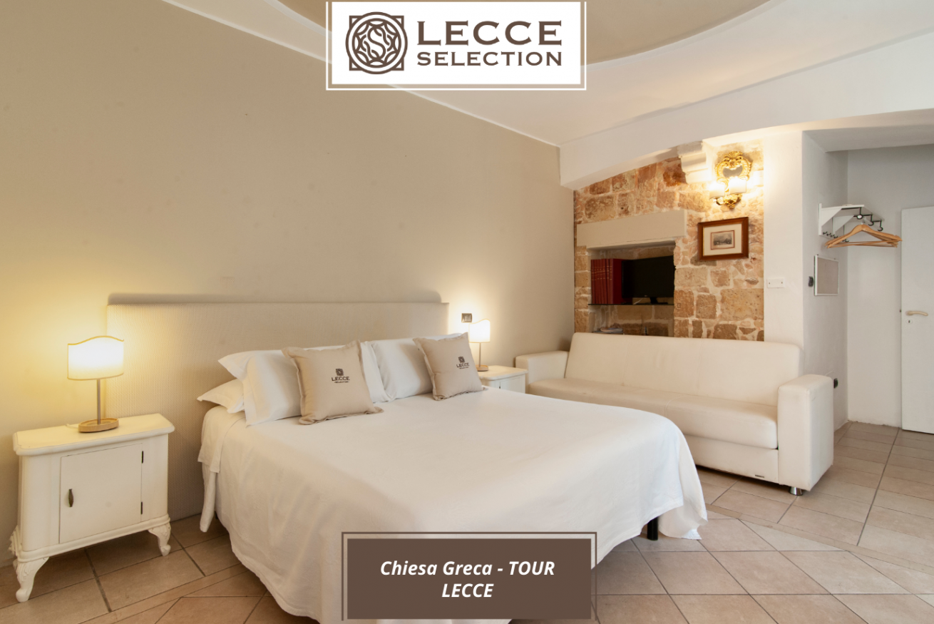All’interno del prestigioso complesso Chiesa Greca Suites, la Camera Tour si trova al piano terra di un antico palazzo in pietra leccese, con soffitti alti e muri a vista.