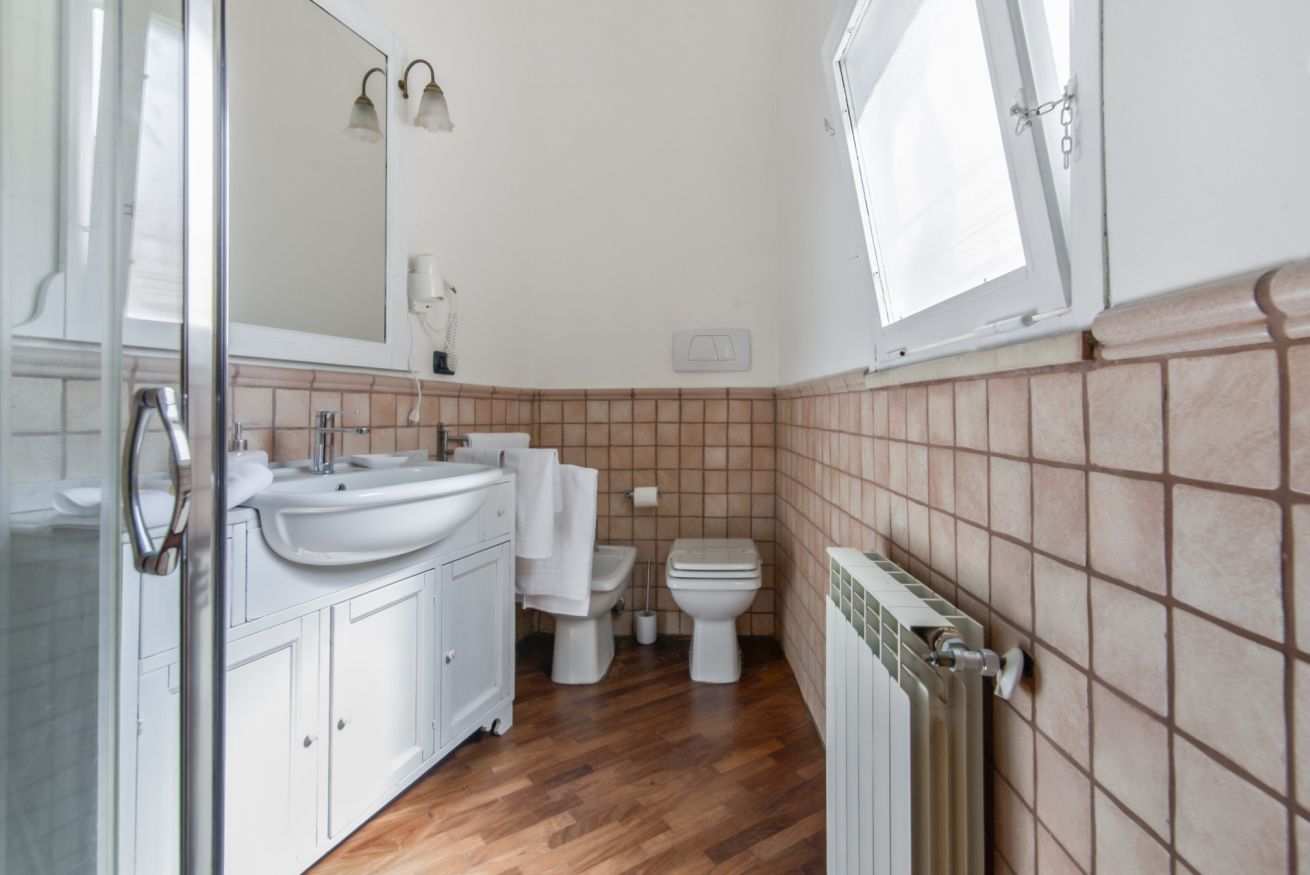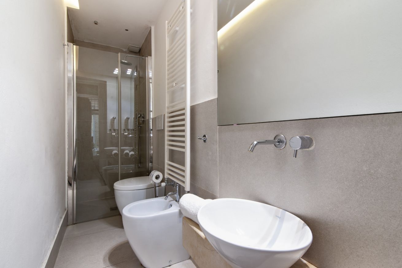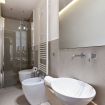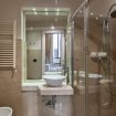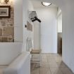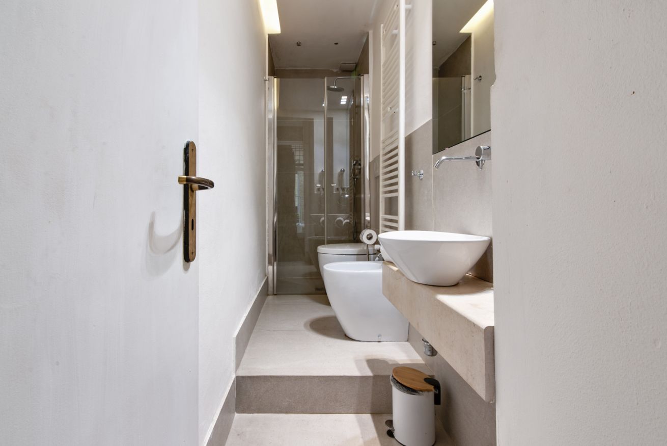 - Il bagno in marmo, ampio e raffinato, è dotato di doccia, asciugacapelli e set completo di asciugamani.