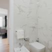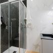 🚿 Bagno moderno con doccia, asciugacapelli e set cortesia.