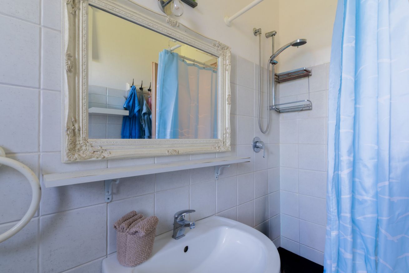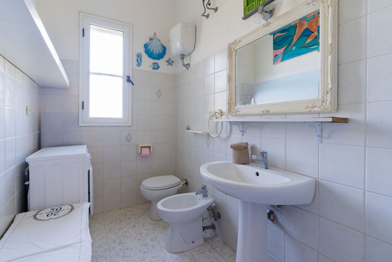 Bagno completo, pratico e funzionale, dotato di tutti i servizi essenziali per il soggiorno, con lavatrice privata.