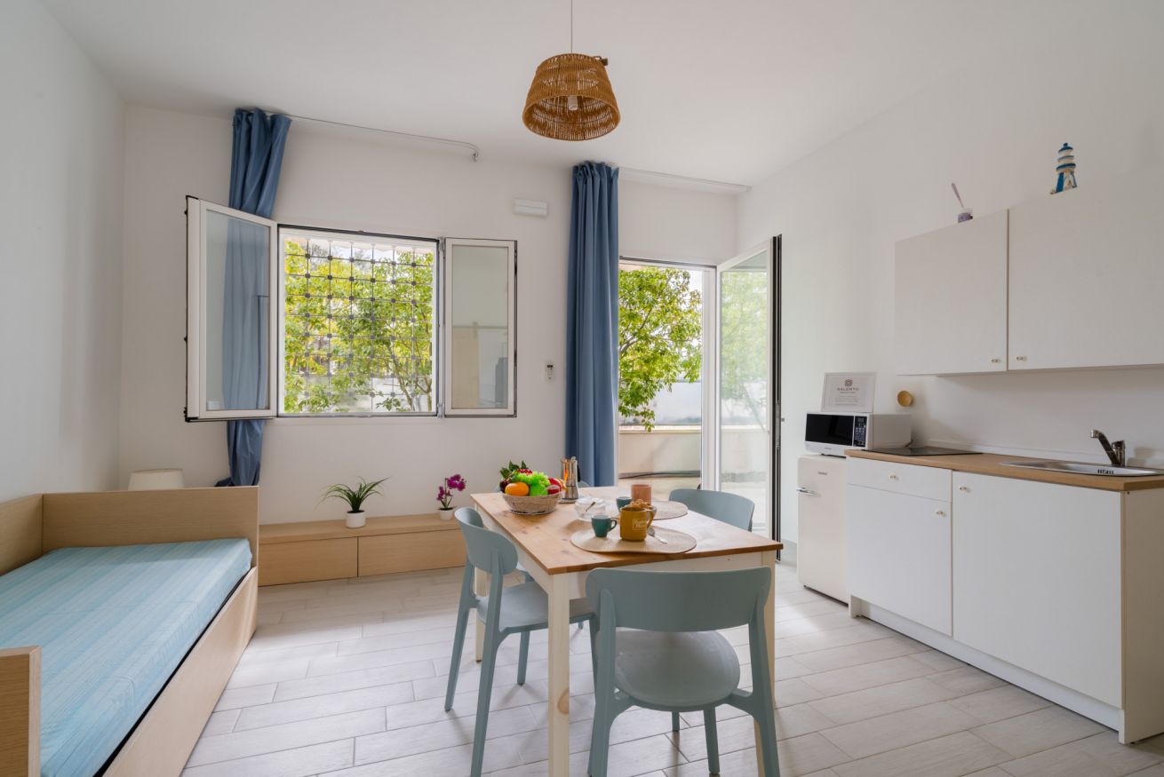 Maestrale Apartments situati nel cuore di Porto Cesareo, a breve distanza dal mare, sono due soluzioni indipendenti pensate per offrire un soggiorno all’insegna di comfort, luce e vita all’aperto. Ideali per coppie, famiglie o piccoli gruppi, gli appartamenti combinano uno stile mediterraneo contemporaneo con ambienti funzionali e accoglienti, perfetti per vivere il Salento in totale libertà.