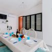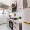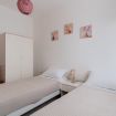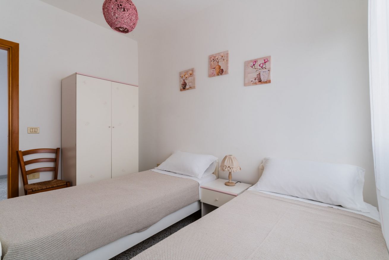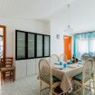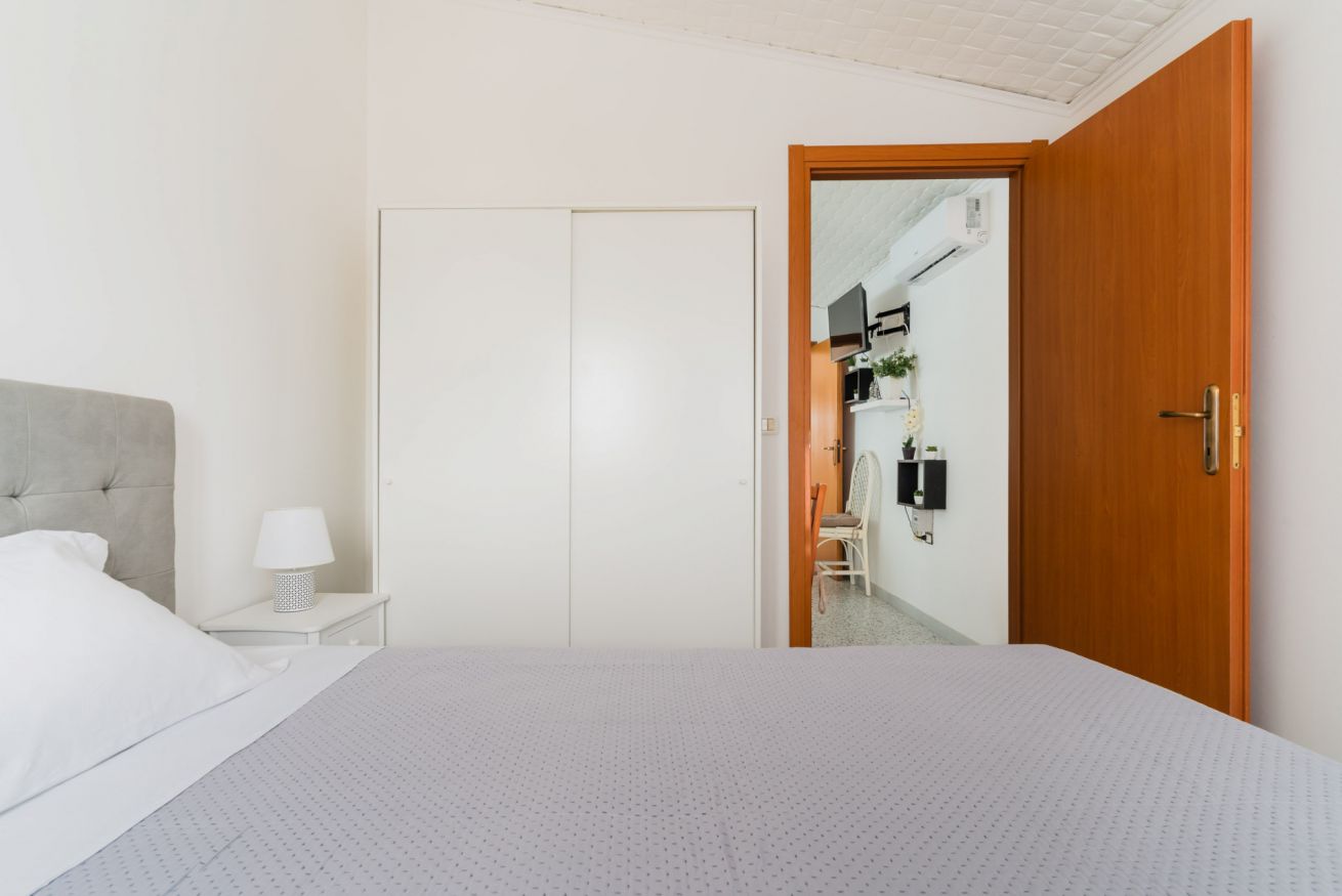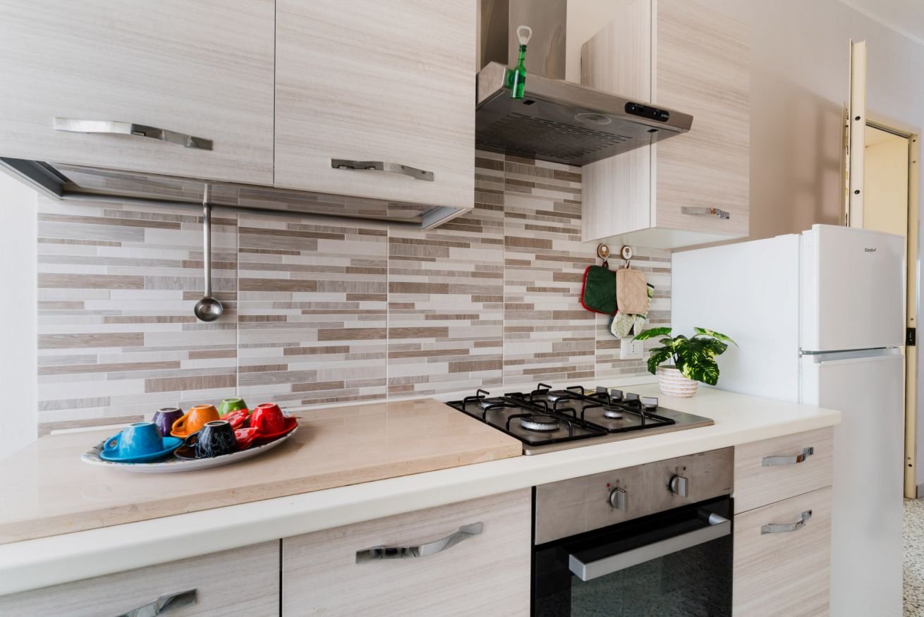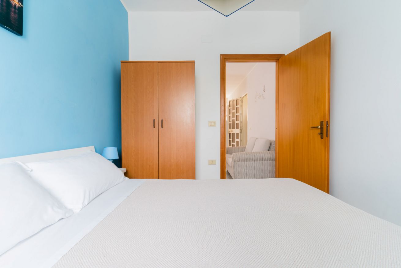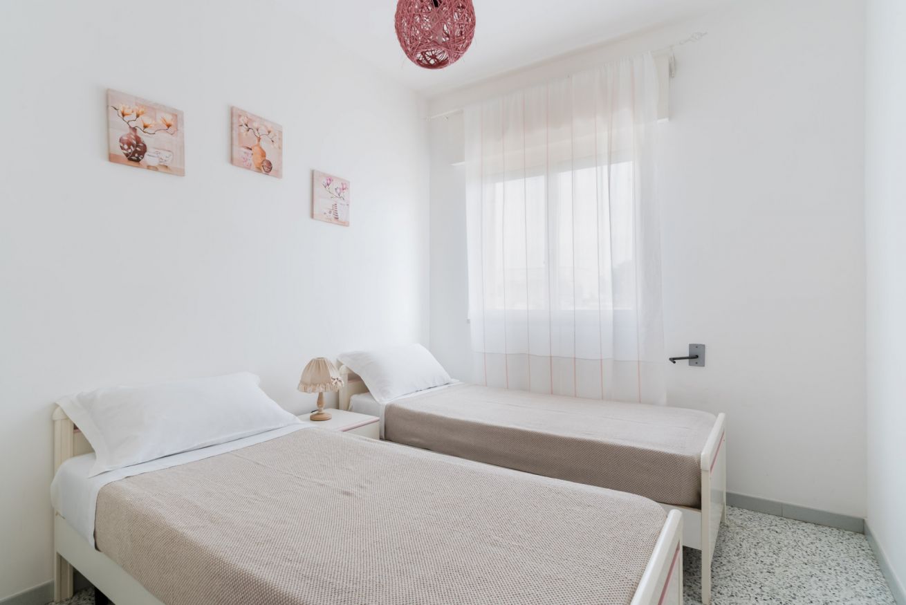Casa Vacanza Gabry 1° Piano, situata a Torre Lapillo, ideale per famiglie o gruppi che cercano una soluzione pratica e funzionale a pochi passi dal mare salentino.Zona Giorno e CucinaL'ingresso si apre su un ampio open space climatizzato, arredato con semplicità e gusto moderno.Soggiorno: Dispone di un comodo divano lineare, una TV a schermo piatto e un grande tavolo da pranzo perfetto per cene conviviali. Spicca sulla parete un originale orologio di design a muro.Cucina: La cucina è separata o parzialmente a vista, dotata di mobili in legno chiaro, fuochi a gas, forno elettrico e un frigorifero con congelatore. È completamente attrezzata per preparare i pasti in autonomia.Lavanderia: È presente un pratico vano tecnico con un grande lavatoio, molto utile per sciacquare costumi e teli mare al rientro dalla spiaggia.Zona NotteLa casa dispone di diverse camere da letto, ognuna caratterizzata da un tema cromatico differente:Camera Matrimoniale "Pink": Caratterizzata da un'ampia testiera in ferro battuto bianco e una decorazione floreale a parete dai toni rosa e lilla.Camera Matrimoniale "Blue": Una stanza luminosa con una parete d'accento azzurro intenso e arredi coordinati, che richiama i colori del mare.Camera Doppia: Arredata con due letti singoli, ideale per bambini o ragazzi, completa di armadio e comodino centrale.Il BagnoIl bagno è funzionale e presenta finiture classiche, dotato di:Box doccia angolare con cabina a soffietto.Sanitari completi (incluso bidet).Mobile lavabo moderno con cassetti e specchiera illuminata.