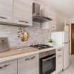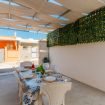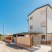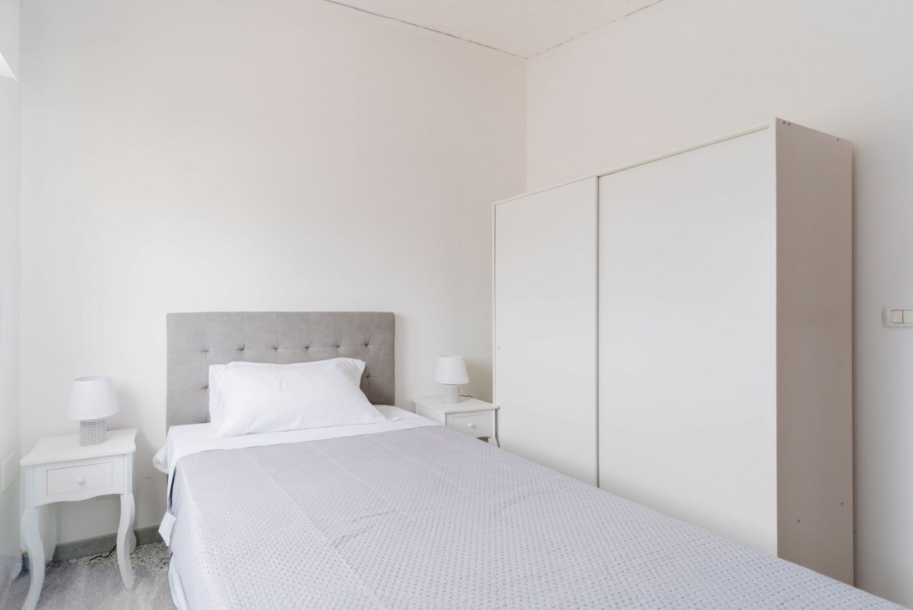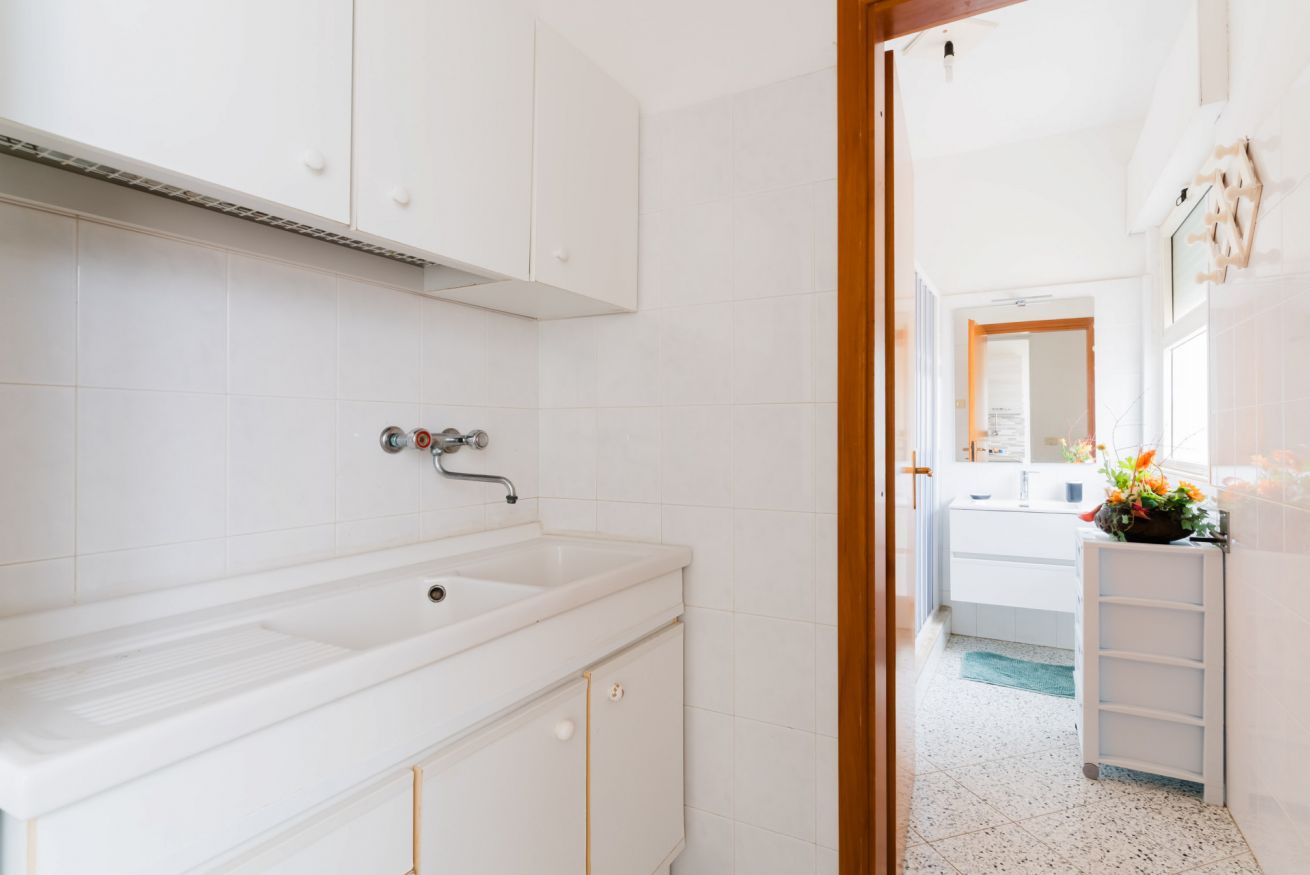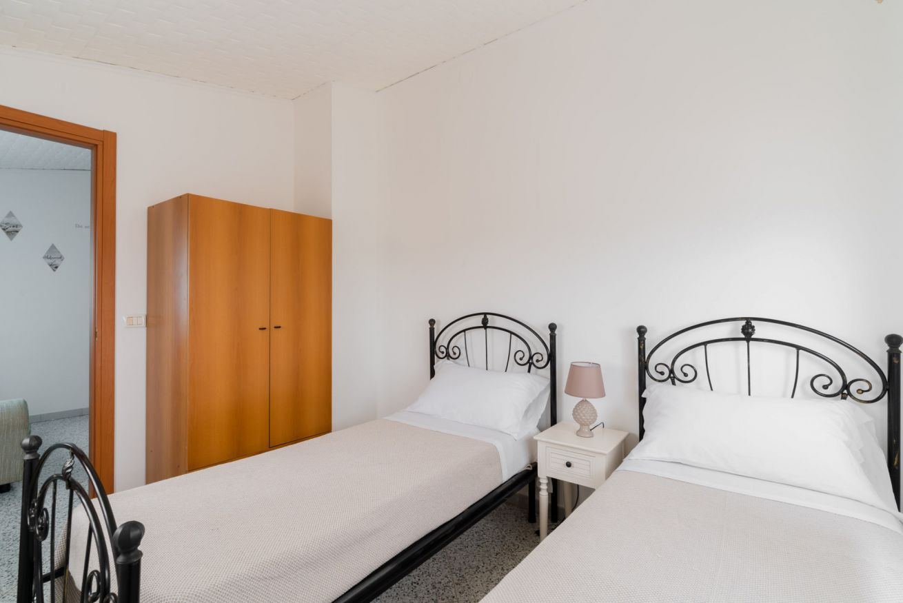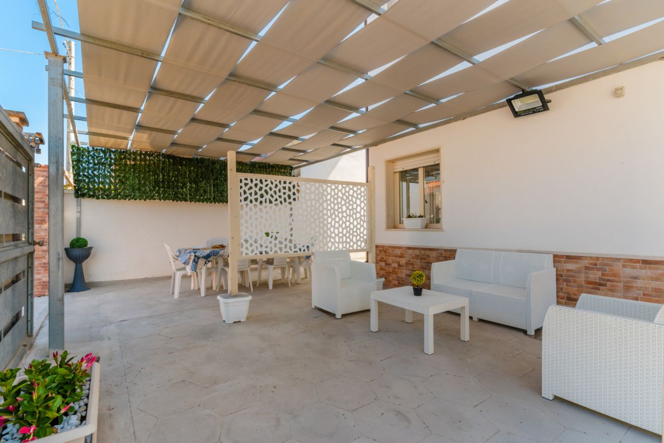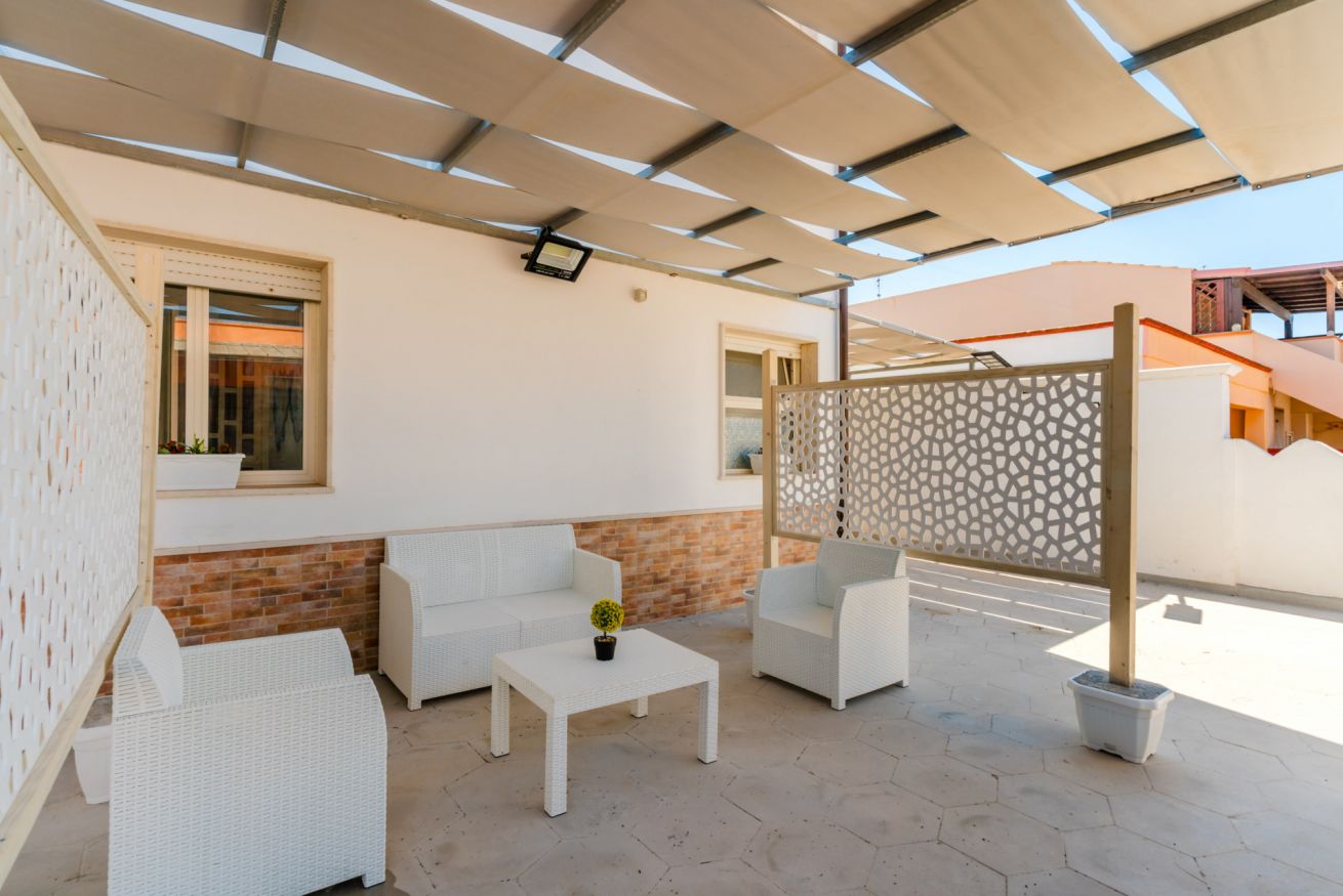 Casa Vacanza Gabry 2° Piano, situata a Torre Lapillo, ideale per famiglie o gruppi che cercano una soluzione pratica e funzionale a pochi passi dal mare salentino.Zona Giorno e CucinaL'ingresso si apre su un ampio open space climatizzato, arredato con semplicità e gusto moderno.Soggiorno: Dispone di un comodo divano lineare, una TV a schermo piatto e un grande tavolo da pranzo perfetto per cene conviviali.Cucina: La cucina è separata o parzialmente a vista, dotata di mobili in legno chiaro, fuochi a gas, forno elettrico e un frigorifero con congelatore. È completamente attrezzata per preparare i pasti in autonomia.Lavanderia: È presente un pratico vano tecnico con un grande lavatoio, molto utile per sciacquare costumi e teli mare al rientro dalla spiaggia.Zona NotteLa casa dispone di diverse camere da letto:Camera Matrimoniale: Caratterizzata da un'ampia testiera in ferro battuto.Camera con letto alla francesce: caratterizzata da un letto con testiera imbottita color grigio tortora, comodini bianchi in stile classico-moderno e un capiente armadio a due ante scorrevoli.Camera Doppia: Arredata con due letti singoli, ideale per bambini o ragazzi, completa di armadio e comodino centrale.Il BagnoIl bagno è funzionale e presenta finiture classiche, dotato di:Box doccia angolare con cabina a soffietto.Sanitari completi (incluso bidet).Mobile lavabo moderno con cassetti e specchiera illuminata.
