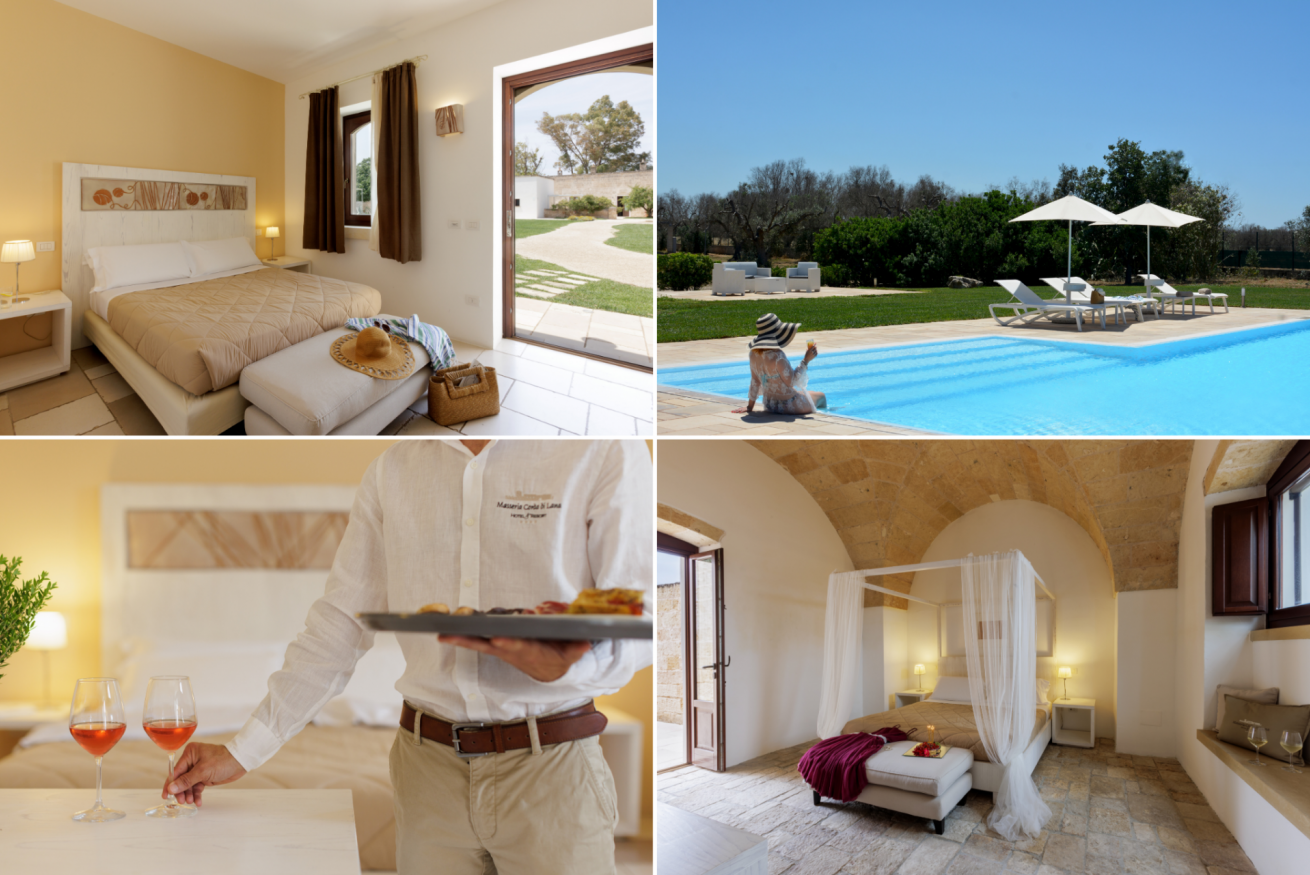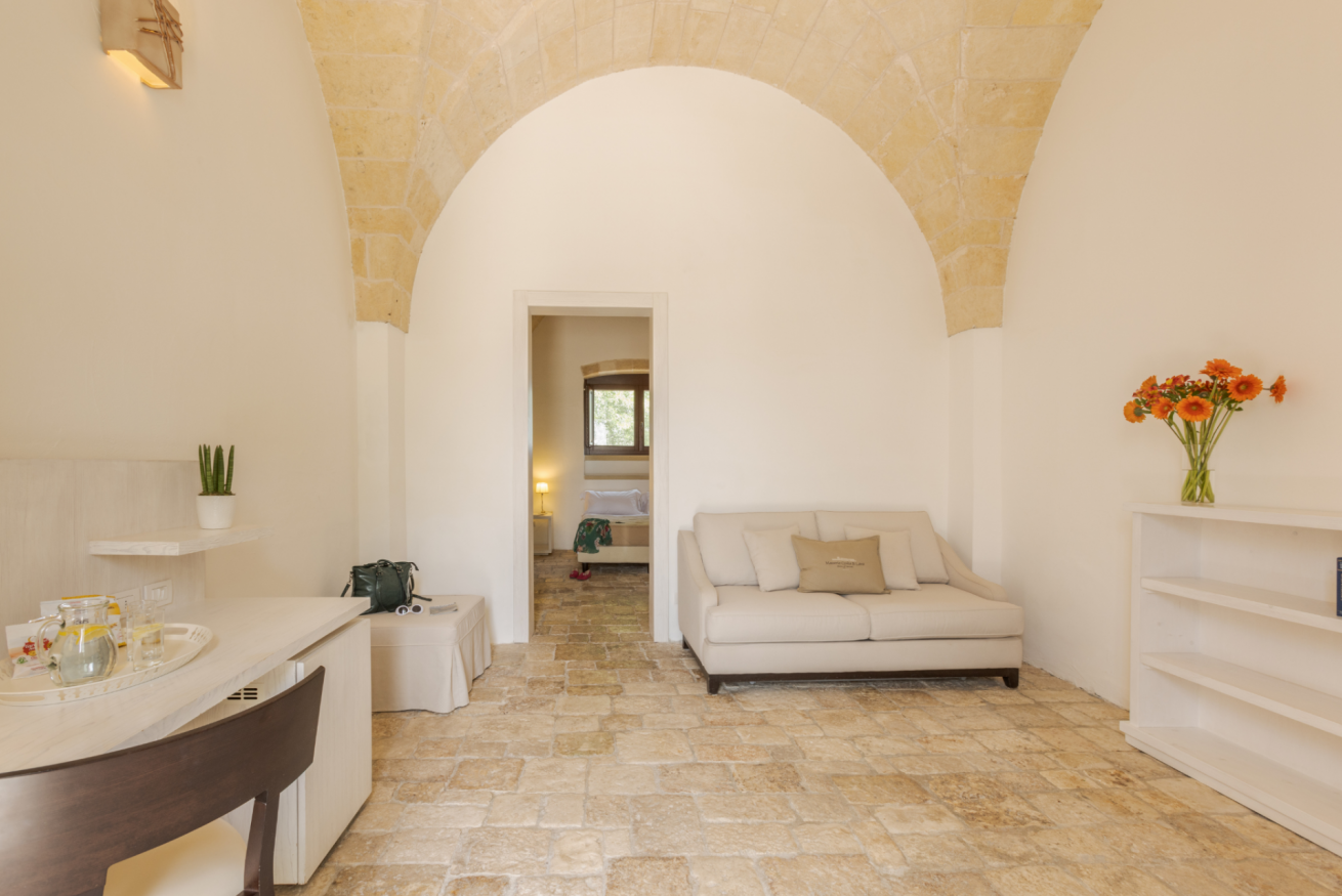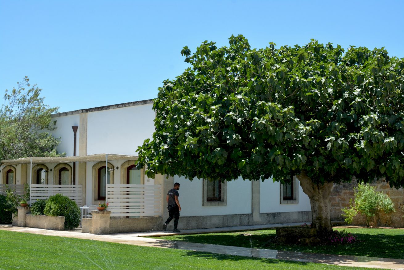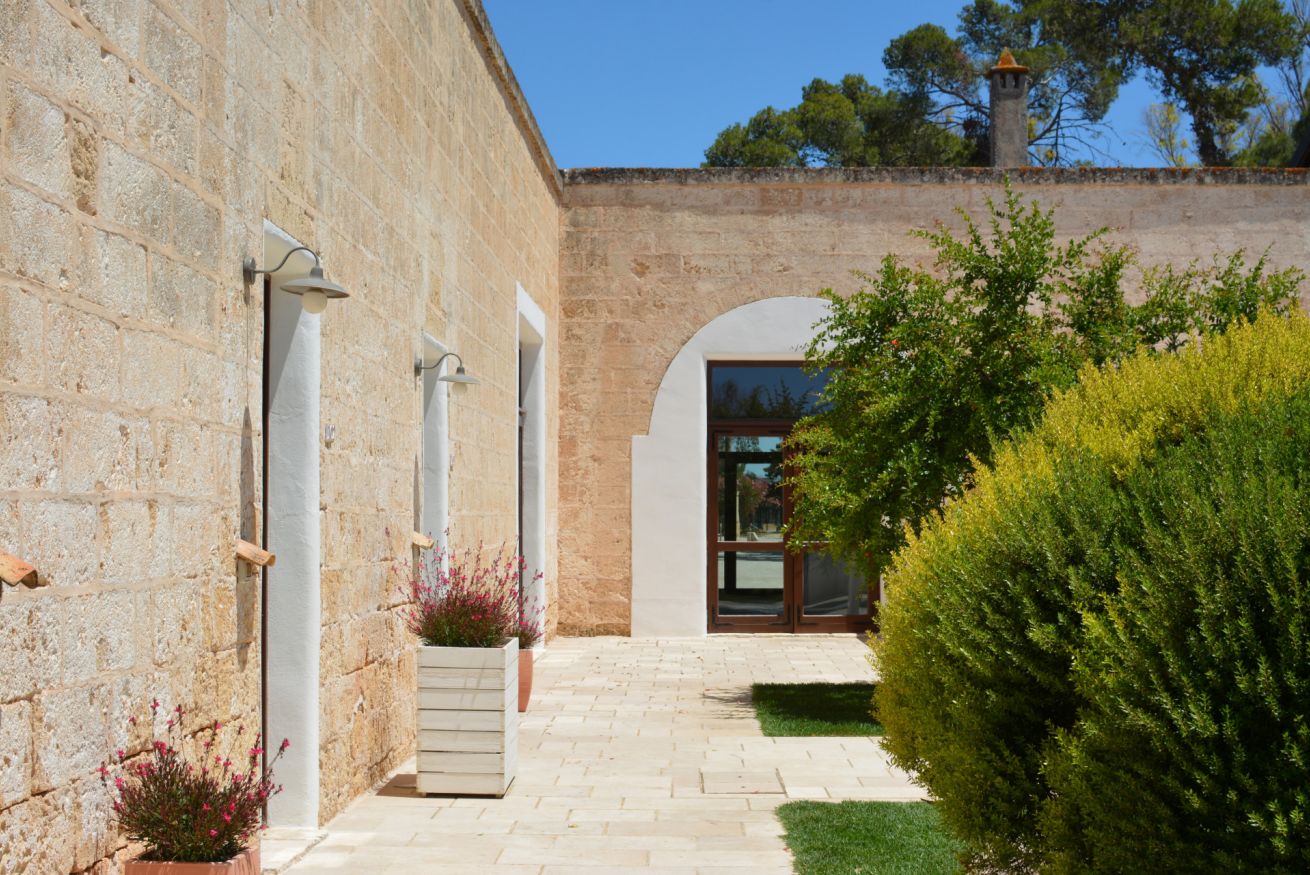 Circondata da ulivi secolari, muretti a secco e ampi spazi verdi curati, la masseria accoglie i suoi ospiti in un’atmosfera rilassante, elegante e profondamente legata alle radici del territorio.