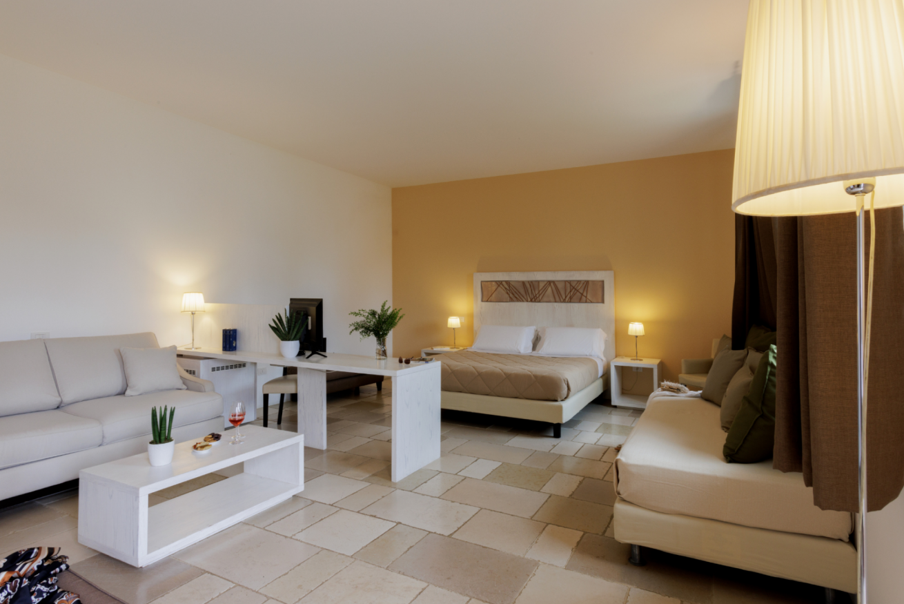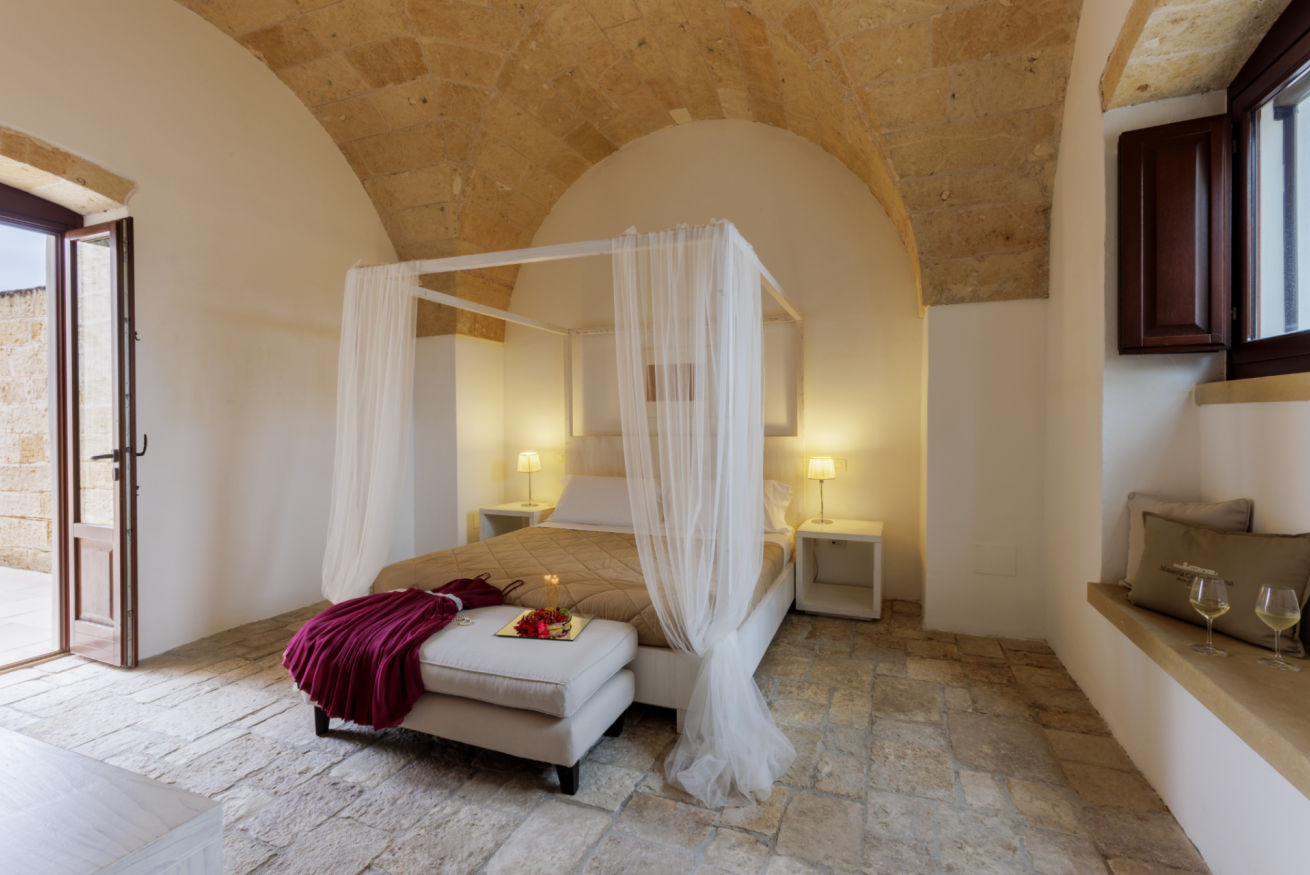 La Masseria offre 14 camere di diverse tipologie, ideali per coppie, famiglie e gruppi.